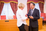 Депутат Думы Марина Степанова удостоена почетного знака «За заслуги перед городом Рыбинск». Награду парламентарию вручил глава города Дмитрий Рудаков.