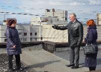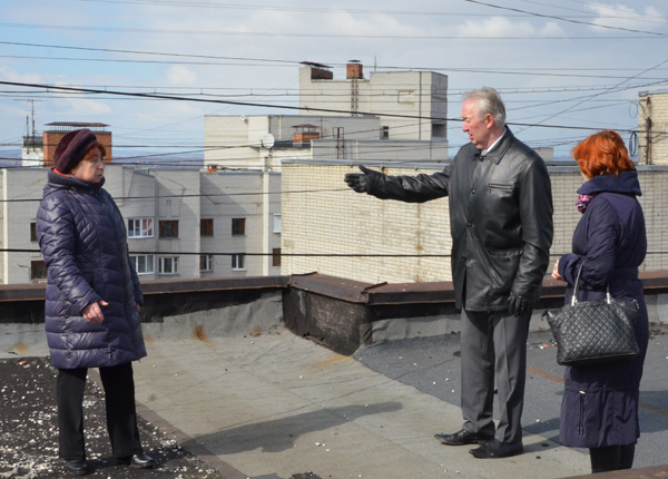 Но большую часть времени комиссия провела на крыше дома №41 по ул. Гагарина. Злополучная крыша, как начала протекать шесть лет назад, так до сих порт и течет. Договор с подрядчиком, который сначала просил отсрочки работ, а потом и вовсе пропал, был расторгнут. На крыше видна старая латка, да и та, по мнению Евгения Заяшникова сделана по принципу «лишь бы дыры прикрыть».