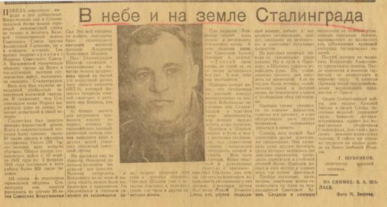 Мой дядя (брат мамы) Шалаев Владимир Алексеевич (1923-2011) во время Великой Отечественной войны был пилотом-штурмовиком 38-го отдельного авиаполка 2-й воздушной армии, участвовал в обороне Сталинграда. Он совершил 82 боевых вылета за штурвалом того самого ИЛ-2, который фашисты прозвали «черной смертью».