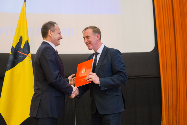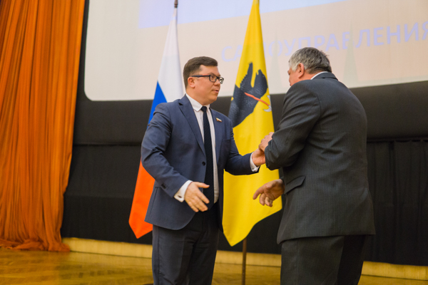 Награды от Ярославского регионального отделения Всероссийского Союза местного самоуправления вручил председатель общественной организации, депутат Думы Александр Тарасенков.