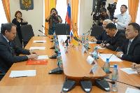 Сегодня состоялась встреча Председателя Ярославской областной Думы Михаила Боровицкого с чрезвычайным и полномочным послом Киргизской республики в РФ Болотом Джунусовым.