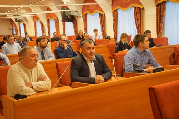 В зале заседаний собрались депутаты, представители Правительства региона, сотрудники правоохранительных органов, а также сами участники долевого строительства.