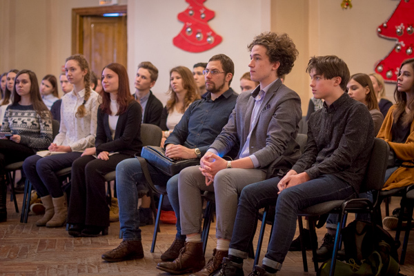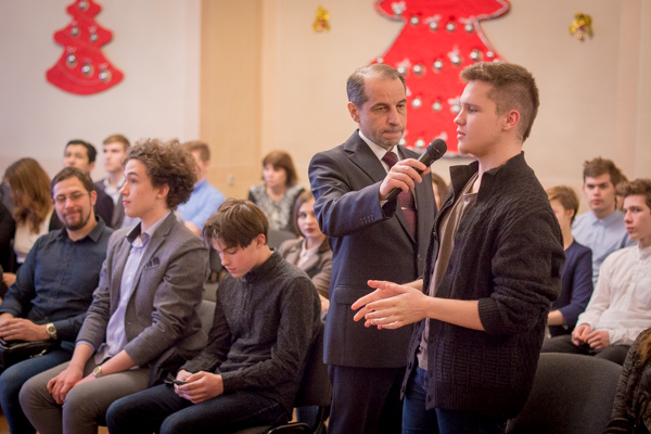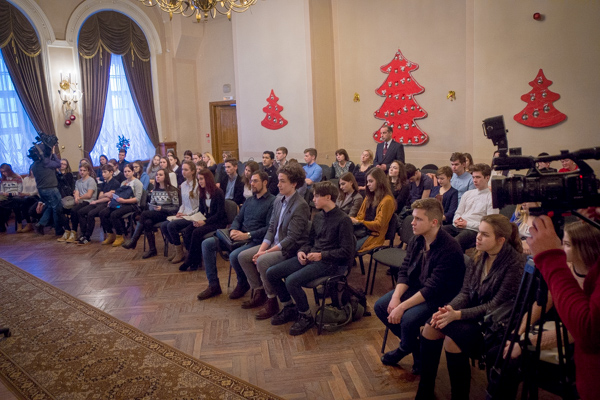 19 декабря в Ярославском музее заповеднике состоялось диалог-шоу «От А до Я о государстве и личности». Учащиеся 9-11 классов школ города Ярославля смогли напрямую пообщаться и задать вопросы председателю Ярославской областной Думы Михаилу Боровицкому. Ребят интересовало множество тем, которые касались депутатской деятельности и предыдущего опыта работы Михаила Васильевича, молодежной политики, поддержки многодетных семей, развития массового спорта, оплаты труда подростков, работающих в период каникул, международного сотрудничества и экономического развития.