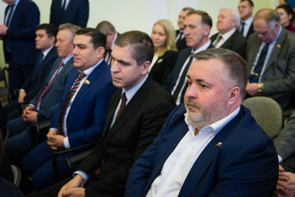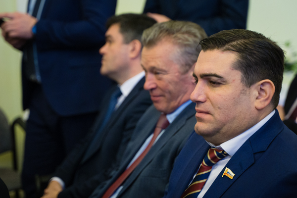 Поздравить нового главу областного центра пришли губернатор области Дмитрий Миронов, председатель Правительства Дмитрий Степаненко, депутат Госдумы РФ Валентина Терешкова, председатель областной Думы Алексей Константинов, заместители председателя Думы Николай Александрычев и Виктор Волончунас, депутаты.