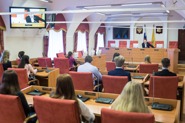 Около 50 школьников из Ростовского района побывали сегодня в здании Ярославской областной Думы, где для них заместитель председателя областной Думы Антон Капралов провел урок Парламентаризма. Он познакомил ребят со структурой Думы, рассказал о правах и обязанностях депутата, о том, как принимаются региональные законы.