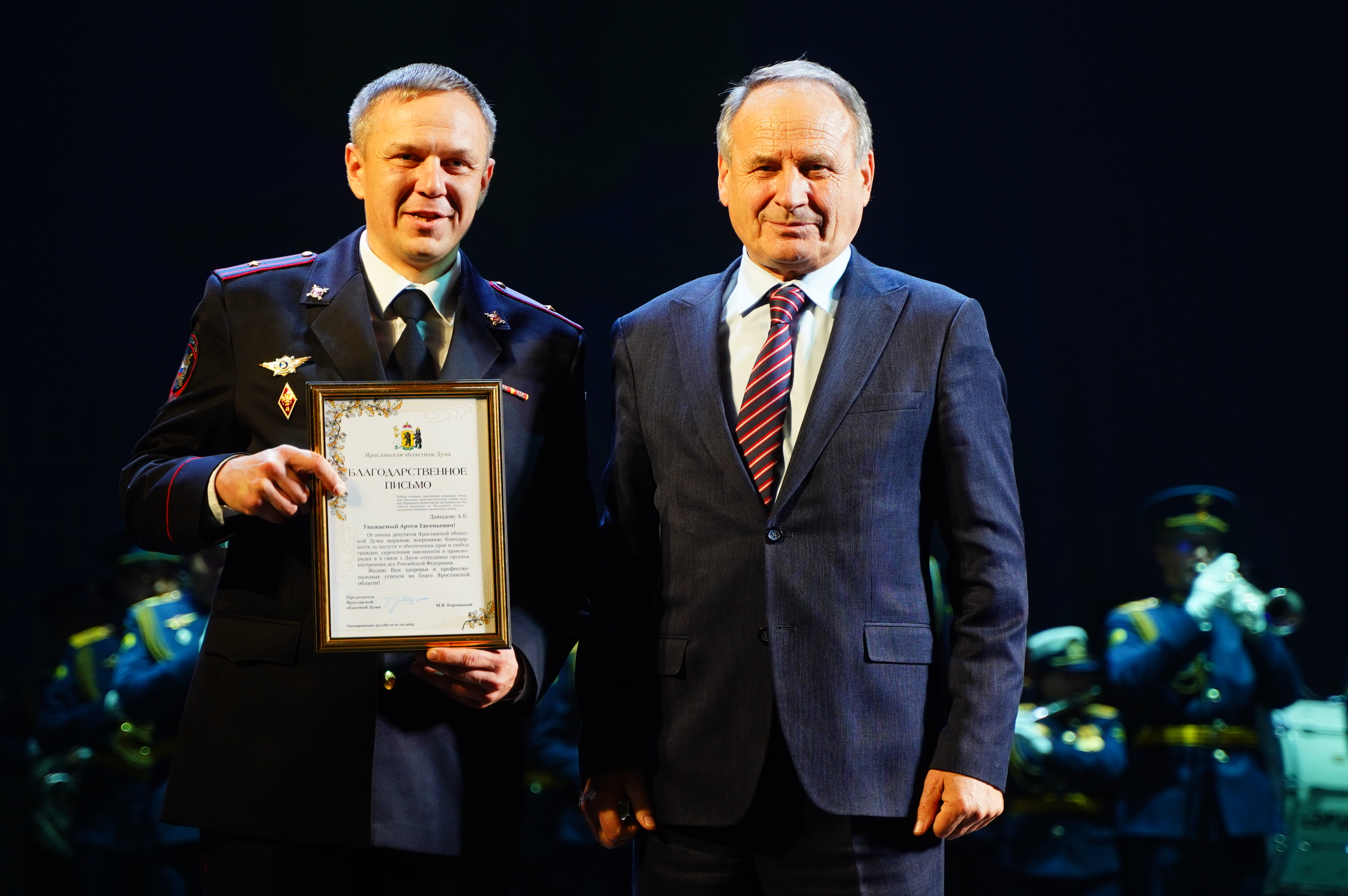 Сегодня в Ярославле в Театре имени Федора Волкова состоялось торжественное мероприятие, посвященное Дню сотрудника органов внутренних дел РФ. Торжество прошло при участии губернатора области Михаила Евраева и председателя Ярославской областной Думы Михаила Боровицкого.