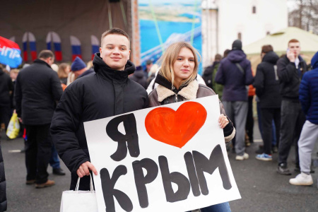 На Советской площади сегодня прошло торжественное мероприятие, посвященное воссоединению Крыма с Россией.